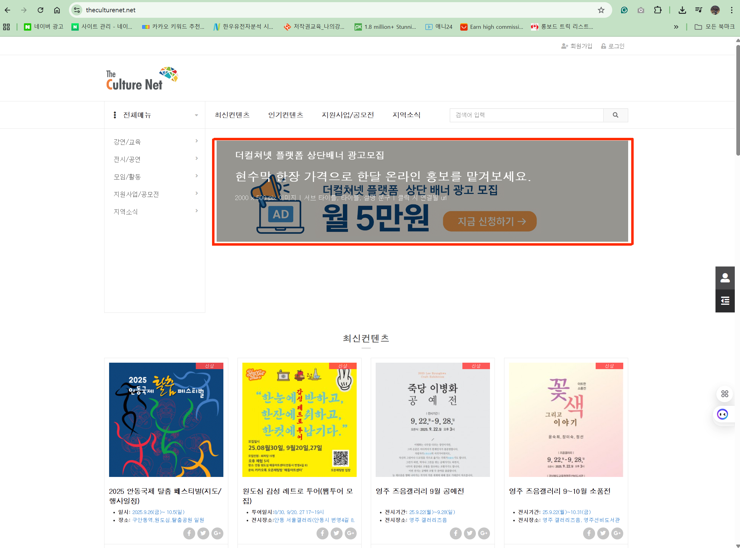 더컬쳐넷 메인, 티스토리 지역소식, 네이버 블로그