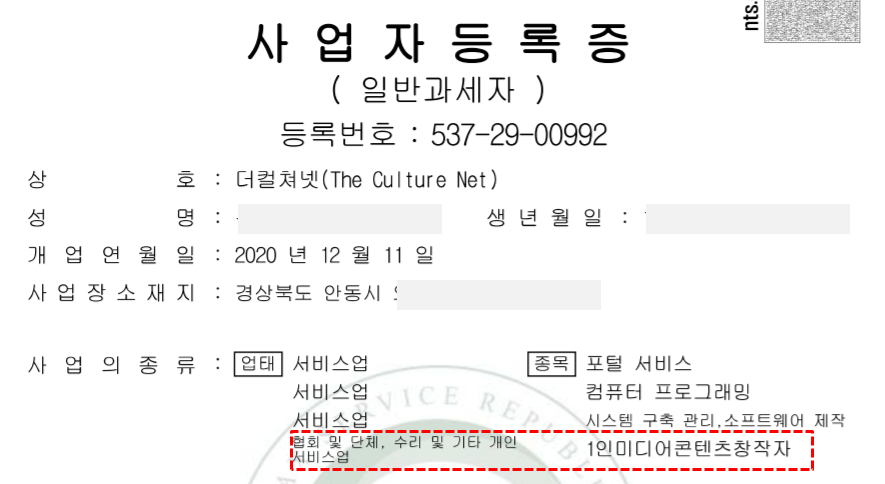 저는 미디어콘텐츠장작을 추가하려는데, 인적 물적시설을 가지고 하는지 아닌지에 따라 나뉘어서 저는 이에 구해받지 않는 1인미디어콘텐츠창작자로 추가했습니다. 주업종은 하나만 되고, 부업종 추가만 가능합니다.